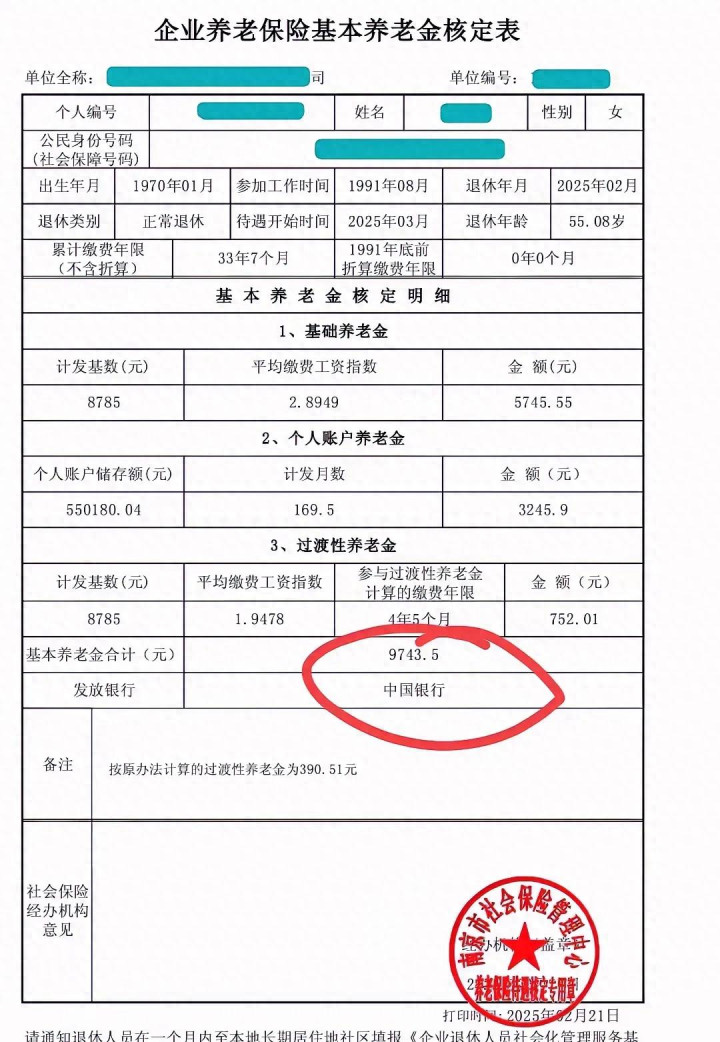 各位可以先把养老金核定单简单看一下,然后详细讲解。